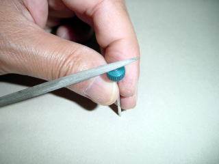 ![]() 5,エッジの尖った鉄やすりで回転位置の目印を刻みましょう。 |
